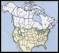 Simply stated; the Largemouth bass is the United States' most popular game fish, pursued by more anglers than any other species. It has been widely introduced far beyond its native range and now is found throughout the U.S., Mexico, and a bit of southern Canada. It shares waters with the almost equally broad ranging Smallmouth bass, but only rarely are the two species found in the same habitats. Smallmouths prefer rocky or gravel bottoms while Largemouths seek vegetation. Northern pike, Muskellunge, bullheads, and the smaller sunfishes are the usual co-inhabitants of Largemouth bass habitats. Largemouths will seek cover in warm weather or drop into somewhat deeper water during daylight hours only to re-enter the shallows to feed as the sun sets.