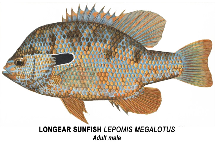 Approach the Longer sunfish as you would our other small sunfish species: 2 to 4 weight outfits to cast small poppers, bugs, and sub-surface flies, such as Wooly Worms and their like. This is another of our small sunfish species that when hooked puts up an excellent battle.